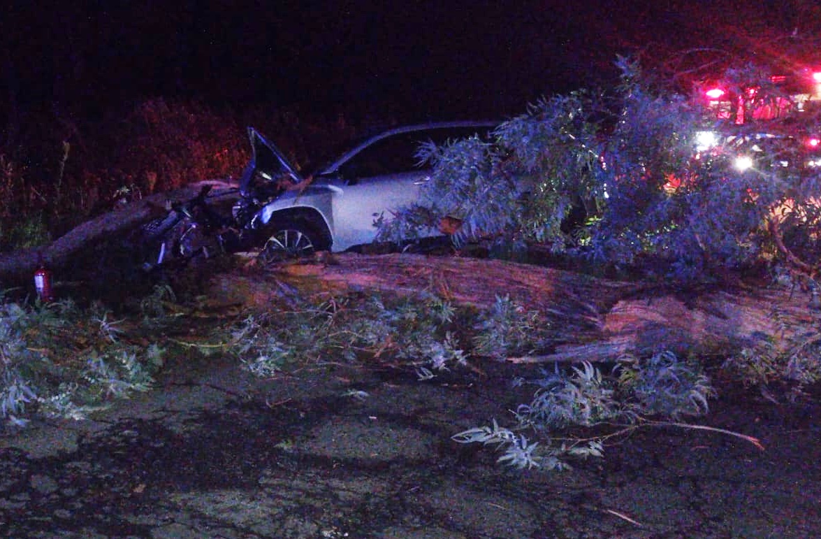 Se pudo verificar que había colisionado con un árbol que se encontraba caído sobre la cinta asfáltica.