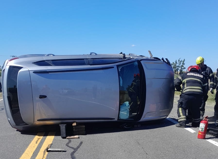 Esta tarde aproximadamente a las 16 horas se produjo un choque y vuelco en ruta 5, altura del km. 224, tomando intervención el Destacamento Comodoro Py.