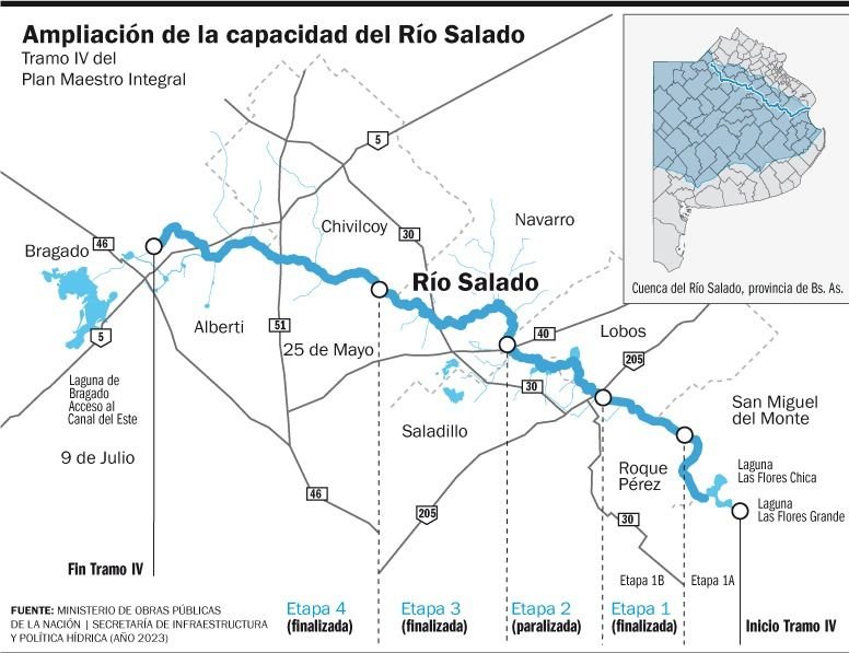 Hoy a la obra de la cuenca del Salado le falta muy poco, pero está frenada La Provincia acusa a la Nación por el abandono del proyecto en un tramo de 33 km que debió estar listo para mayo de este año