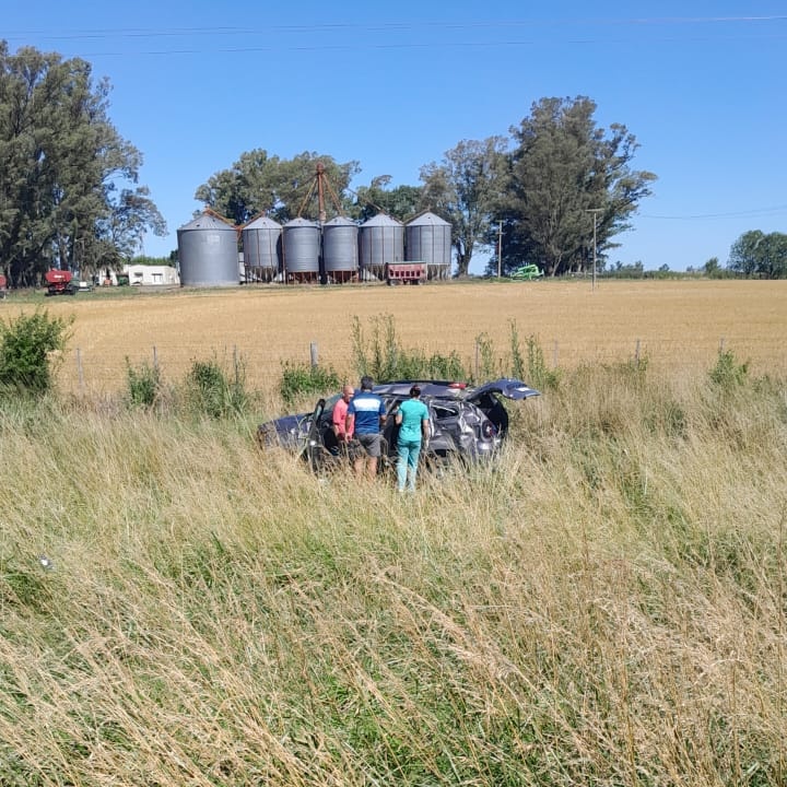 Este domingo aproximadamente a las 15:20 horas se produce el despiste y el vuelco de un auto en el km 223 de la Ruta Nacional 5 sentido Bragado- 9 de Julio.