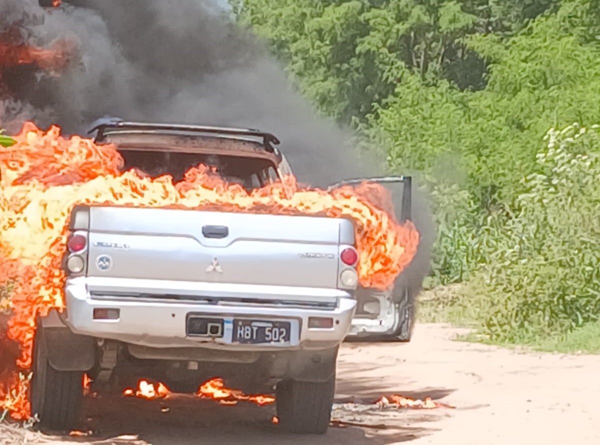 Hoy, luego del mediodía, a raíz de un llamado al 911 de emergencias, personal policial se hace presente en Los Cedros y Maestros Argentinos, lugar donde se estaba incendiando una camioneta
