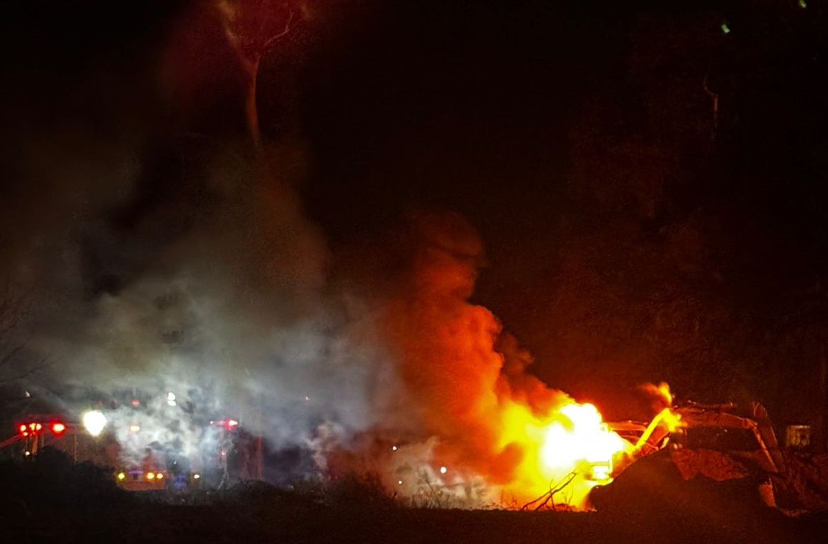 Allí por causa se trata de establecer, toma fuego una retroexcavadora marca Hyundai 130, propiedad Alberto IBAÑEZ.
