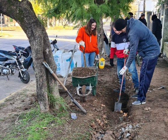 Por ejemplo, recientemente, se contó que los alumnos de la Tecnicatura de MMO junto a su profesora Andrea Arce, siguen trabajando en la restauración de la vereda.