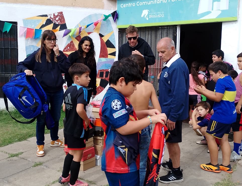 Durante la mañana, en una jornada nublada pero cargada de alegría, los chicos que asisten al potrero del FONAVI recibieron su indumentaria y la lucieron con orgullo.