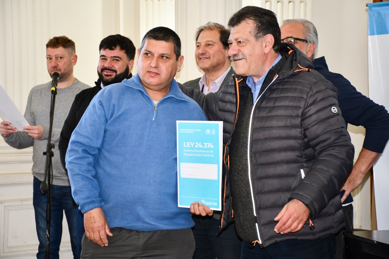 La entrega se concretó en el marco de la Ley Nº 24.374 y estuvieron presentes autoridades de la Subsecretaría de Hábitat de la Comunidad de la Provincia de Buenos Aires.