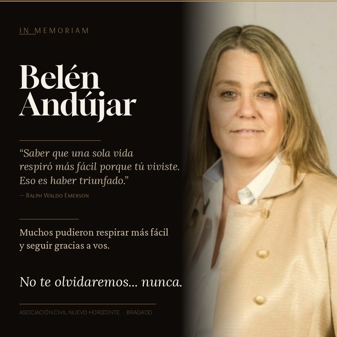 La Asociación Civil Nuevo Horizonte comunica el fallecimiento de su alma mater, Belén Andújar.