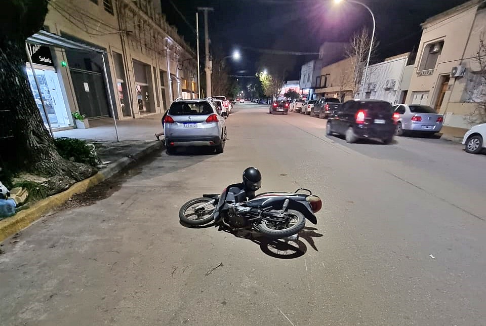 La conductora de la moto cayó al pavimento y fue trasladada en ambulancia para su control en el Hospital Municipal.