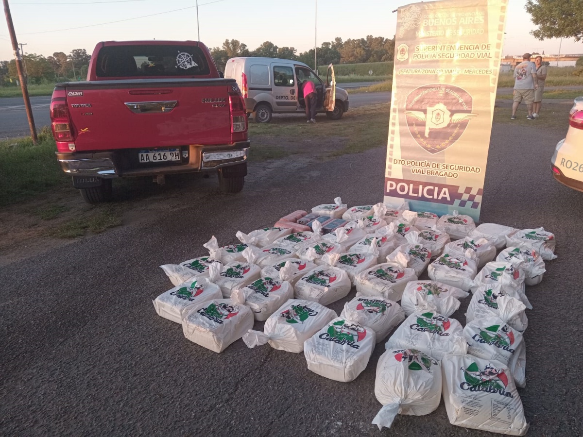 Se descubrió también que transportaban en el interior del rodado 40 paquetes de mozzarella, marca Calabria por un total de 400 kilos y 5 paquetes de jamón cocido por un total de 10 kilos.