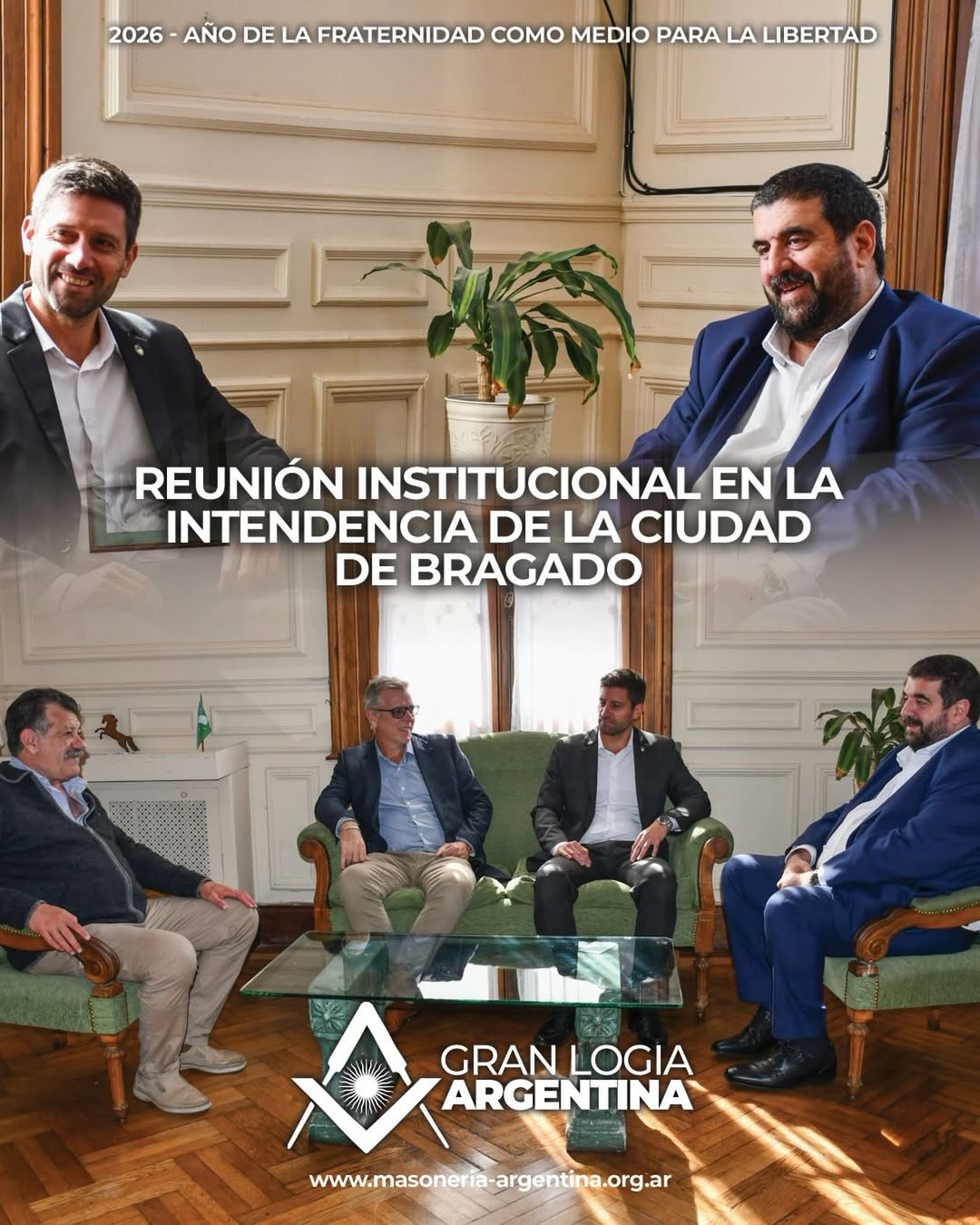 Se llevó a cabo una reunión institucional con el intendente de la ciudad de Bragado en la que estuvo presente el Gran Maestre Pablo Lázaro, máxima autoridad de la Gran Logia Argentina de Libres y Aceptados Masones.