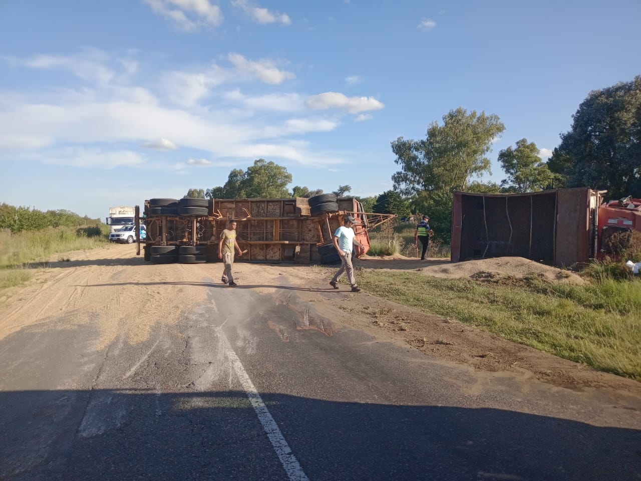 El transporte de cereales conducido por una persona de 27 años, quedó cruzado sobre toda la cinta asfáltica.